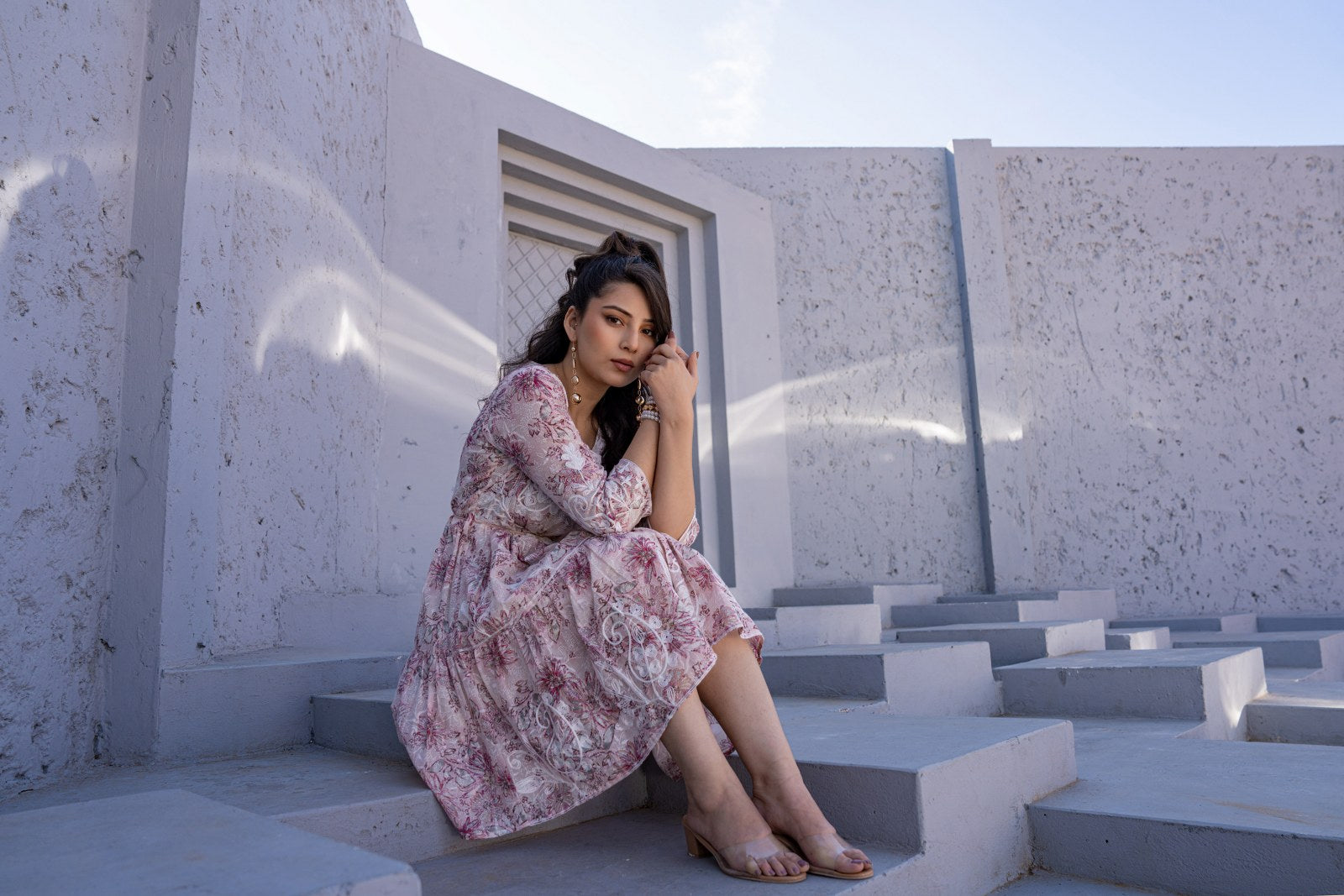 Pattern: Floral print with white embroidery accents