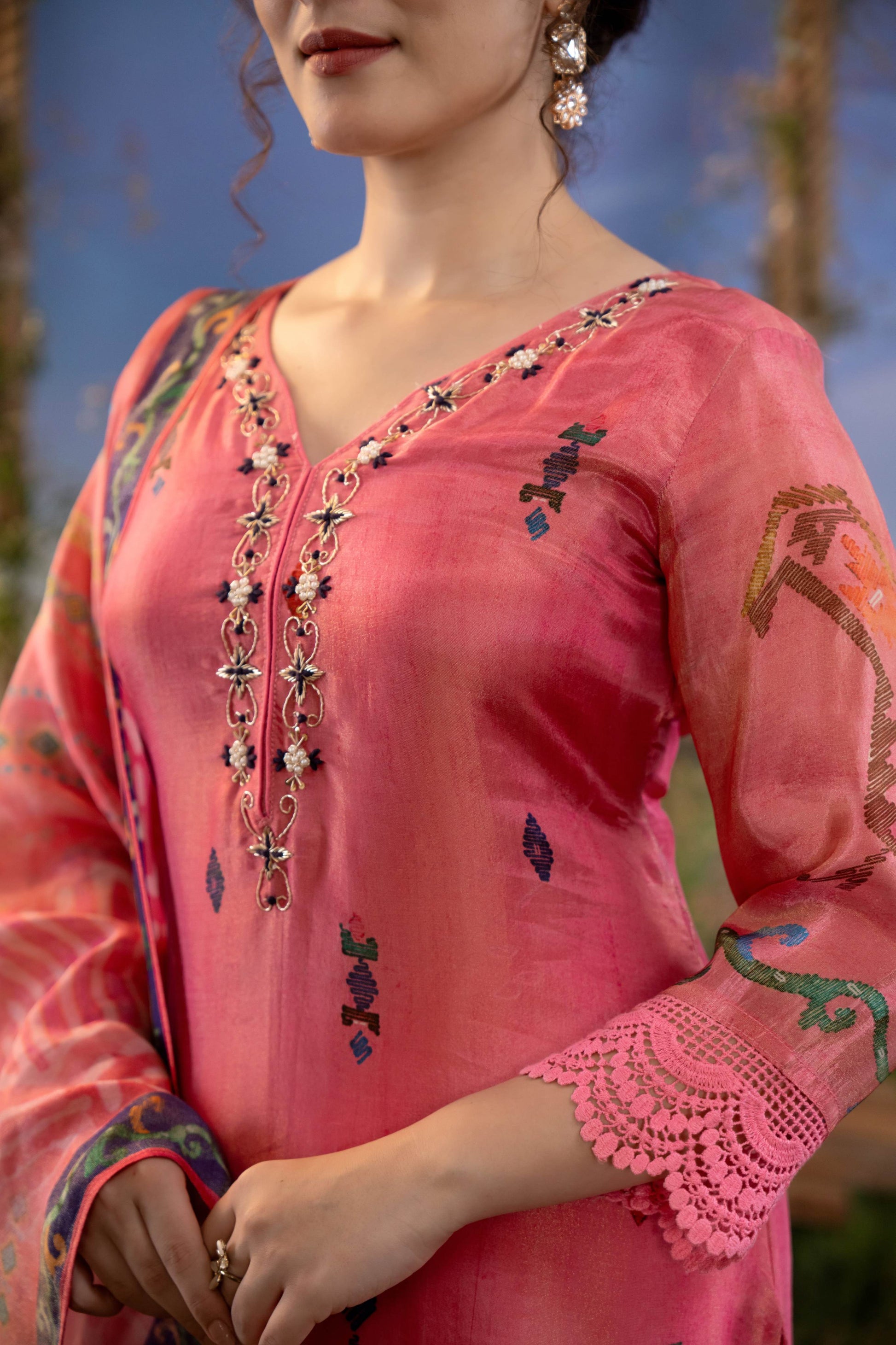 Blush Rose Muslin 3-Piece Embroidered Kurta Set