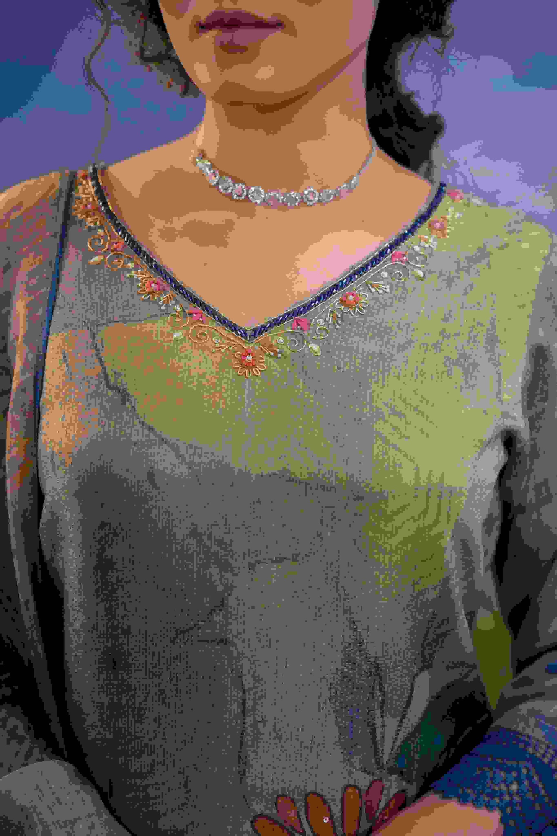 Kurta: Smoky Grey with Subtle Multicolor Accents